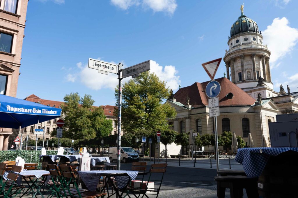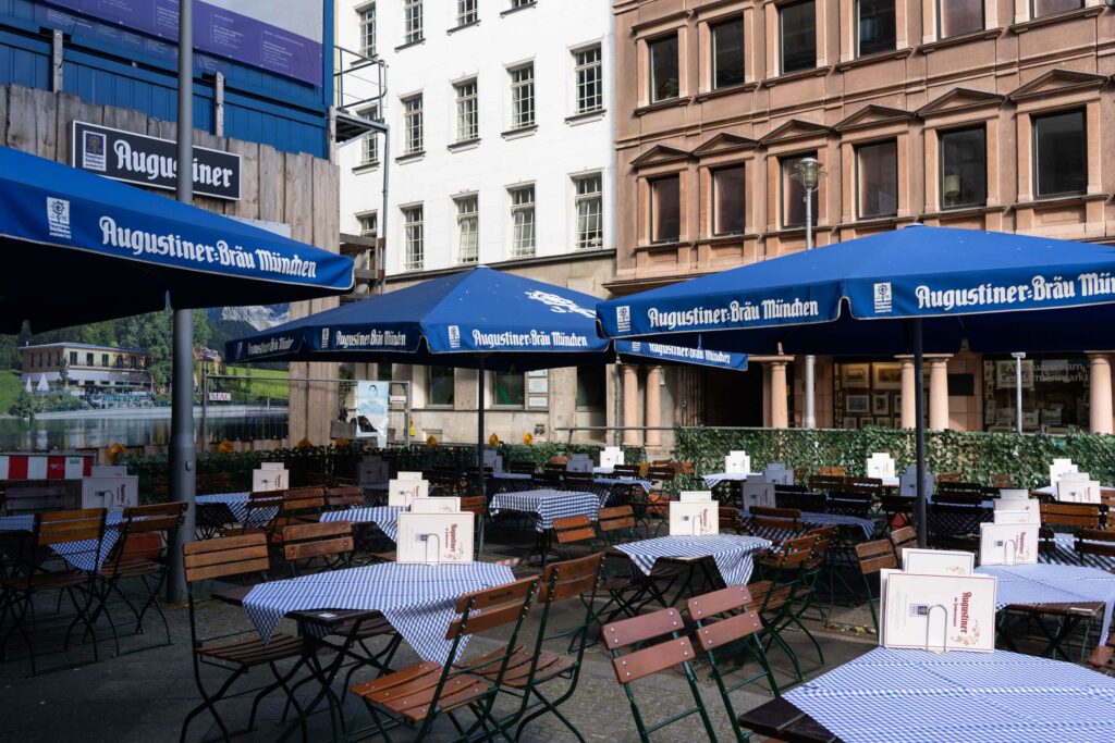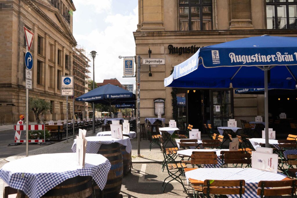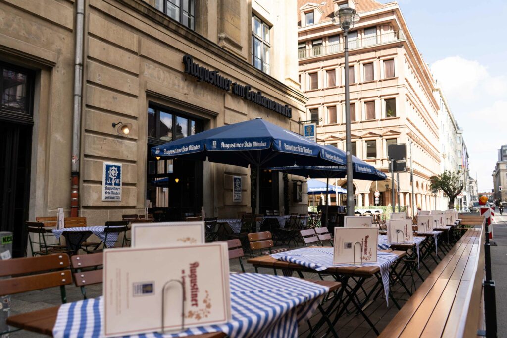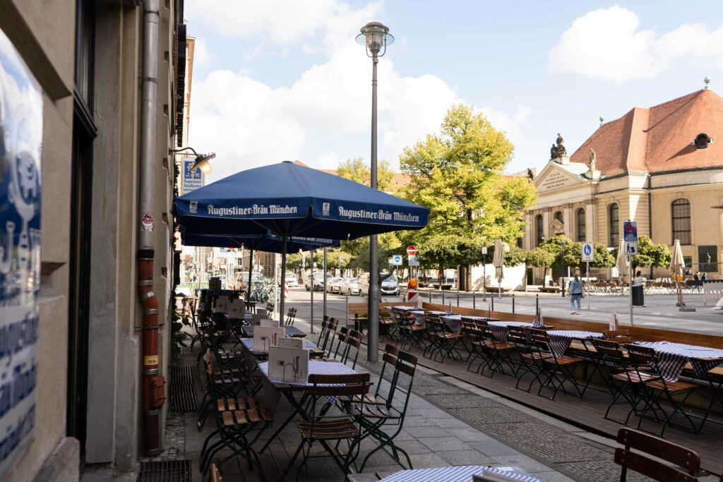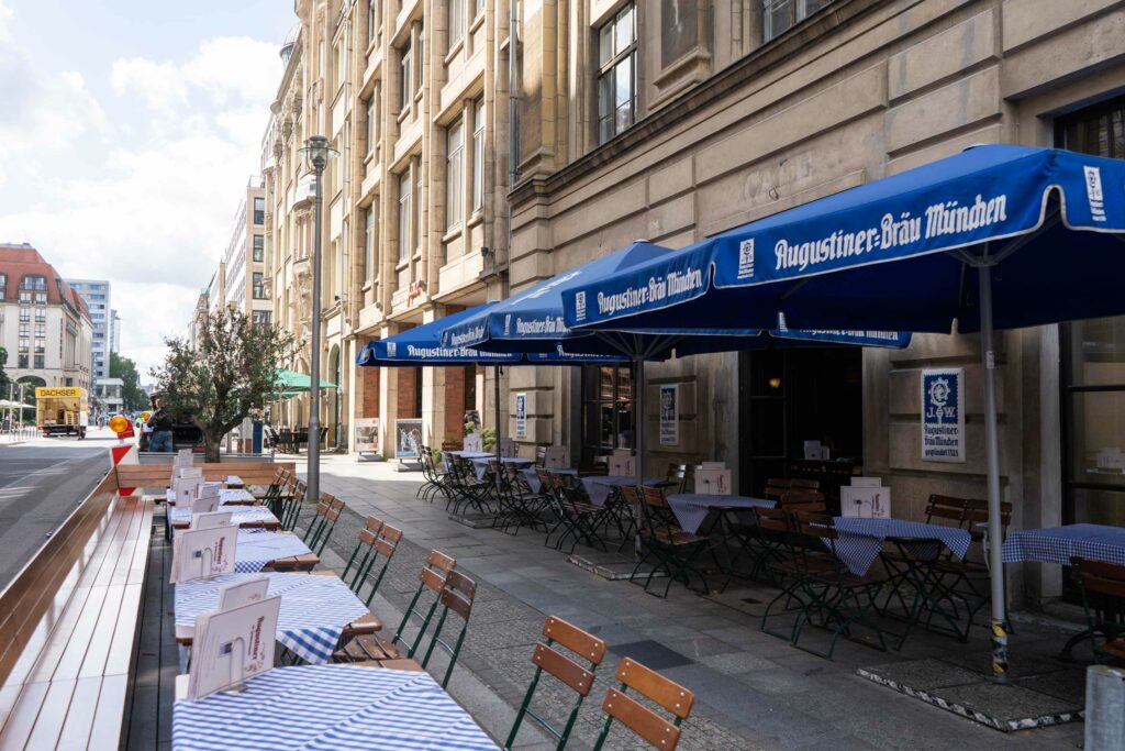 Unsere Biergarten-Terrasse rund ums Haus ist mittendrin im Hauptstadtherz. Und der historische, frisch sanierte Gendarmenmarkt direkt vis-à-vis ein Anziehungspunkt für Einheimische, Stammgäste und Berlin-Besucher aus aller Welt. Hier ist das quirlige Stadtleben der Hauptstadt zu spüren und gut zu beobachten. Und dennoch ist die Hektik der Großstadt für einen Moment in weiter Ferne. Hier lässt sich der Moment genießen. Bei kühlem Augustiner Bier, typischen bayrischen Schmankerln oder Erfrischungen laden wir zum Genießen und Verweilen ein. Ob Spaziergänger, City-Tourist, Radler, Nachbarn oder Müßiggänger – hier trifft man sich gern.
