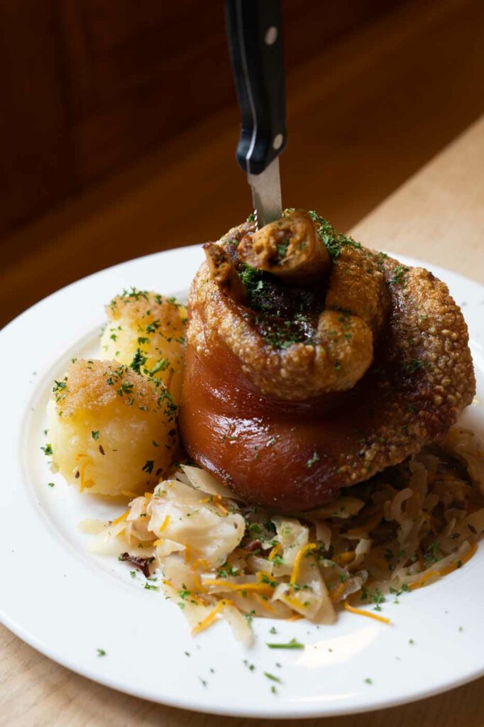 Dazu gibt’s herzhafte bayrische Schmankerl von unserer großen Speisekarte: vom traditionellen Obazda mit einer frisch gebackenen Brezn, über deftige Brotzeit-Brettl, bis hin zu Schweinsbraten mit knuspriger Kruste, Knödeln und Sauerkraut oder natürlich unsere XXL-Schweinshaxe, ein gutes Kilo!